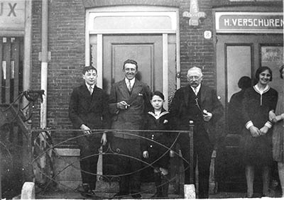 - Poserende familie voor het pand van scheepsbenodigdheden H. Verschuren op de Kuipershaven.