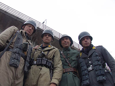 Deelnemers aan nagespeelde oorlogshandelingen in de eerste dagen van de Tweede …