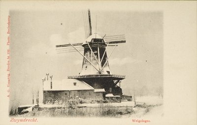 - Molen "Welgelegen", ook wel "Weltevrede" of "Dikke Molen" genoemd. Afgebroken in 1927. Aan de overzijde Dordrecht, de Grote Kerk.