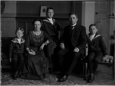 Groepsportret van de familie Van Randen: vader, moeder, 3 …