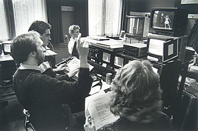 Televisiestudio van de Trom. Links Pieter Hornix