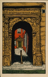 Tekening van de ingang van de voormalige Munt op de …