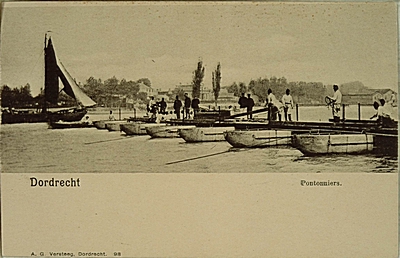 Oefening Korps Pontonniers 1900-1905; bouwen pontonbrug