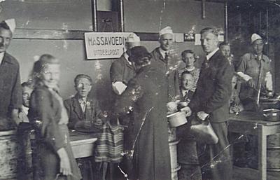 Uitdeelpost massavoeding (gaarkeuken) in de school aan …