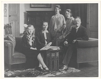 Groepsportret in een huiskamer van de familie Krins. …