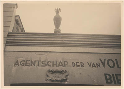 Een gekroonde valk op het pand van Van Vollenhoven's …