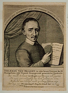 Portret van Tieleman van Bracht met 4-regelig vers van Bidlo