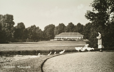 Het Wantijpark met de speelvijver.
