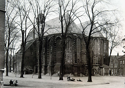 Gezicht op de Nieuwkerk vanuit zuidoostelijke richting.