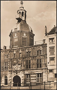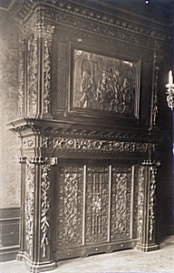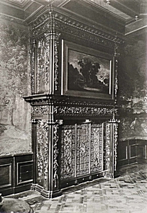 Gebeeldhouwde schouw in een pand op het Blauwpoortsplein.