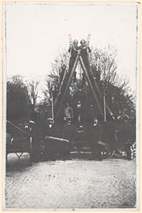 Een brandweerdemonstratie met haspelwagen en schuifladders.