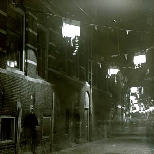 Zakkendragershuisje in de Mazelaarsstraat. Links de Bomkade.