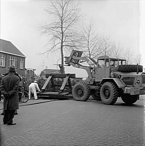 Aanleggen stootblok in de spoorrails Merwedestraat.