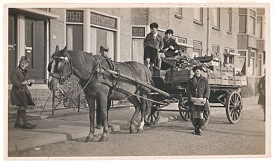 Groenteman met paard en wagen in de Transvaalstraat.