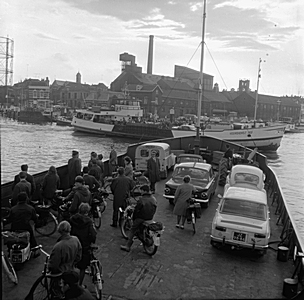 Mensen op de pont naar Papendrecht. Met op de achtergrond …