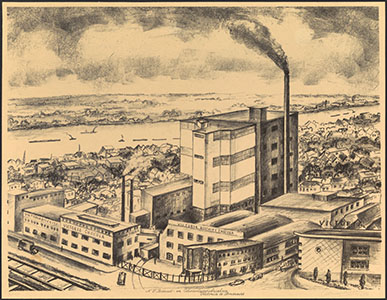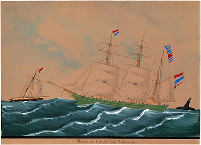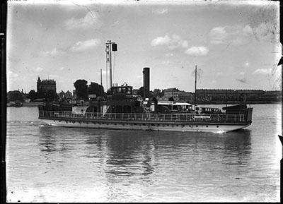 Veerboot op de Oude Maas. Links hotel Het Witte Paard en …