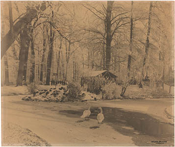 Zwanen op het ijs in Park Merwestein.