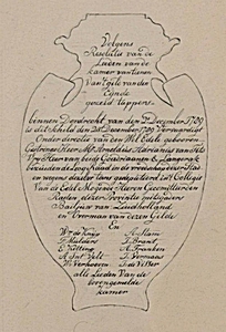 Tekst op achterzijde van het draagteken van het tappersgilde