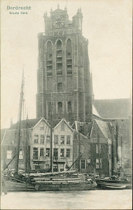 Lange Geldersekade met Grote Kerk, gezien vanaf de Bomkade.