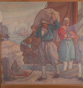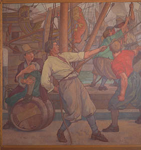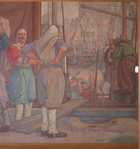 Wandschildering in de trouwzaal van het stadhuis.