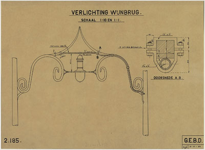 Een ontwerp van gasverlichting voor de Wijnbrug.