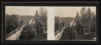 Stereofoto van de brug over de Vuile Vliet naar de …