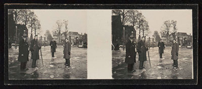Stereofoto van de dichtgevroren Nieuwe Haven vanaf de …