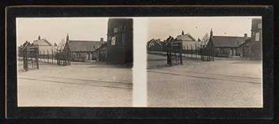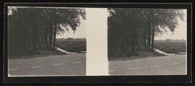 Stereofoto van het toegangshek naar de Watermolenweide, …