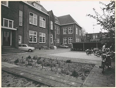 Binnenplaats met fietsenstalling en achterzijde van de …