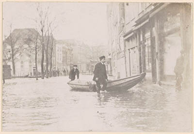 De Aardappelmarkt tijdens hoogwater in het begin van de …