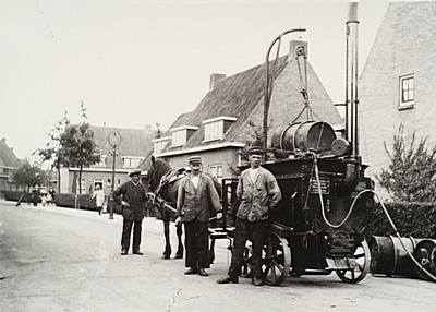 Teermachine getrokken door een paard in de Theophile de …