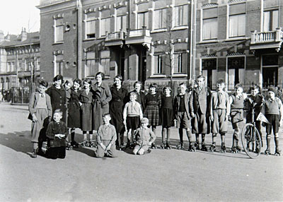 Rolschaatsers op het oostelijk deel van het Oranjepark. …