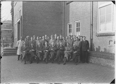 Groepsfoto van de directeur en docenten van de Rijks …