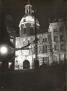 Verlichte Groothoofdspoort naast Hotel Bellevue in de …