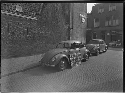 Twee Volkswagens Kever op de hoek Korte Kolfstraat / Vest