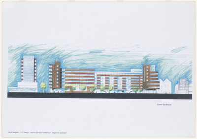 Ontwerp van de gevels van kantoren aan de Spuiboulevard.