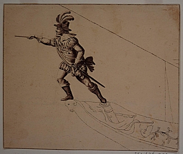 Historische tekening van een poort in het Hof.