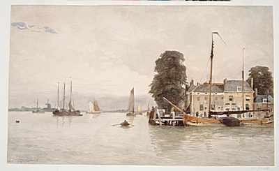 De watermolen in de zogenaamde Watermolenweide, gezien …