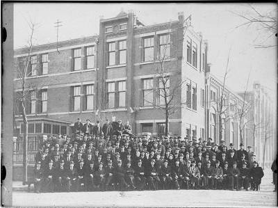Groepsportret personeel elektrische centrale aan de …
