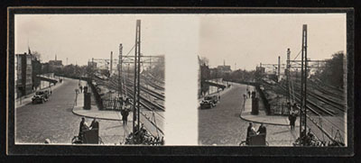 Stereofoto van de spoorwegovergang Spuiweg - …