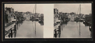 Stereofoto van de Spuihaven vanaf de Zuidersluisbrug. …