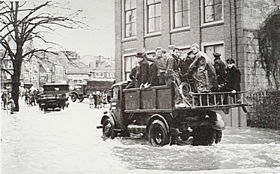 Hoogwater op de Lange Geldersekade, richting …