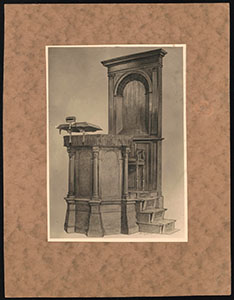 Tekening door Otto Dicke van de preekstoel van de …