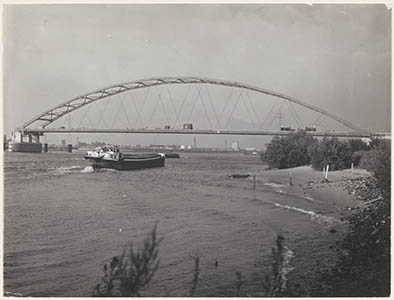Bouw van de Merwedebrug tussen Dordrecht en Papendrecht.