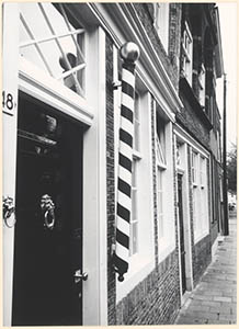 Een barbiersstok naast de deur van het gerestaureerde …