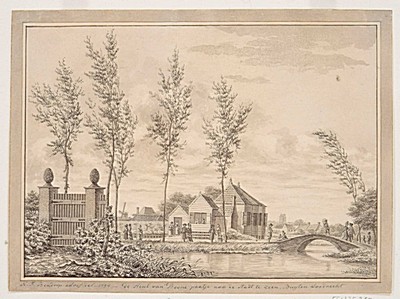 Tekening door J. Hoolaart van het Koningshof met poort …