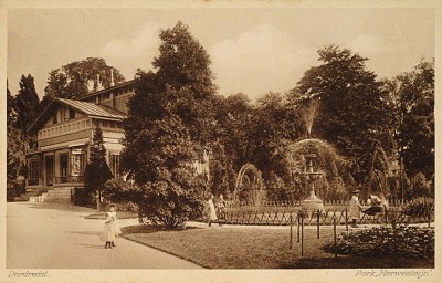 Vijver met fontein nabij villa Merwestein in Park …