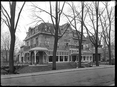 Hotel Ponsen aan de zijde van de Stationsweg. Op de …