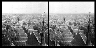Stereofoto vanaf de toren van de Grote Kerk over de …