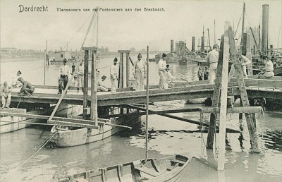 Manoeuvres van de Pontonniers aan de Biesbos omstreeks 1910.